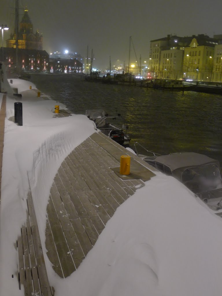 For the last day of November, a pikkujoulu was planned on board of Valborg. Unfortunately, the wind and waves kept us ashore. So instead of sailing, we made some rope work, salted the deck, saved some small boats that were taking water and plainly froze in the blizzard. That was an exciting Friday night for sure. 30.11.2012